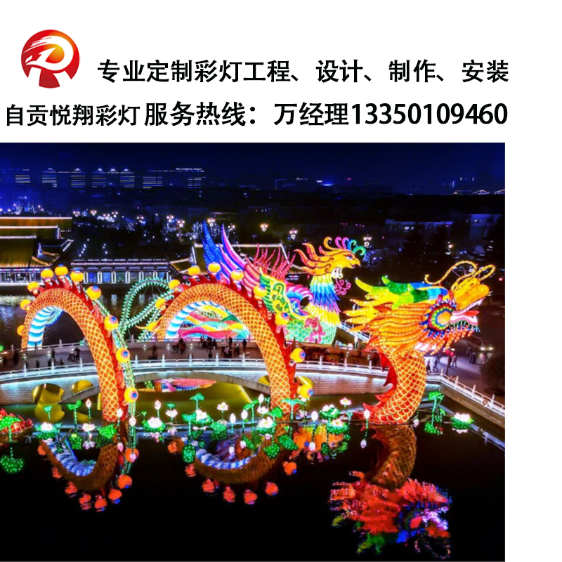 自貢悅翔彩燈文化藝術有限公司成立于2023年11月08日,專注于于中國民間傳統藝術文化的傳播和推廣。 本公司是一家專業從事于彩燈的設計、制作、展出項目,人文景觀及各類仿真動植物骨架的策劃、設計、開發和制作的企業。專業制作各種大型電動、機械彩燈、卡通系統彩燈、廣告彩燈、彩車、燈籠、彩旗等傳統民間工藝品,專業策劃、籌辦各種大、中型燈展、燈具活動。以高技術、高起點,以彩燈工藝為方向,真誠、精心工作贏得廣大合作伙伴的好評。我們真摯誠盼海內外各界有識之士與我們共謀發展、同襄共舉、共鑄輝煌。